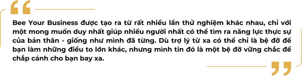 Chúng mình đã thử nghiệm, đã sai và đã làm lại nhiều lần để có được những thành công nhất định trong nghề trợ lý từ xa. Trong quá trình xây dựng sự nghiệp đó, chúng mình nhận ra, để thành công, bạn không cần là ai giỏi giang ngoài kia, càng không cần sở hữu những điều xuất sắc vô ngần.