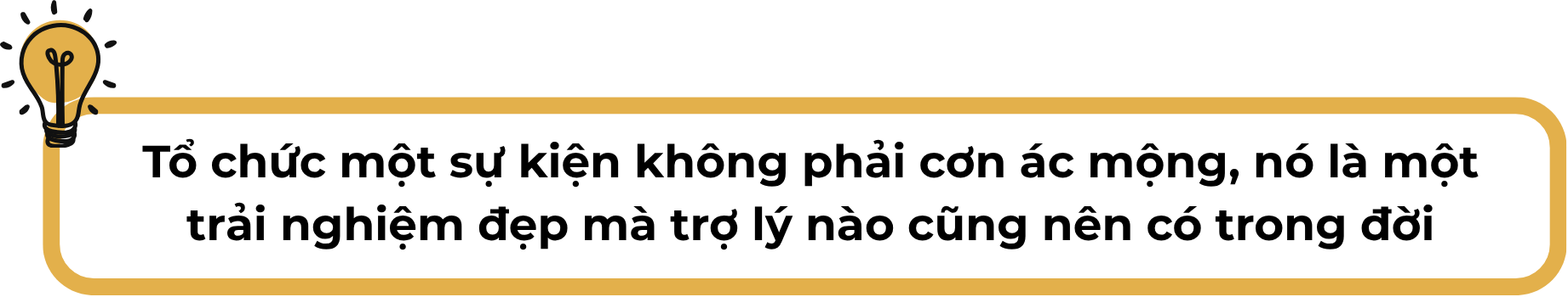 Mỗi sự kiện là một bước chân nhỏ trong hành trình dài mình hiểu về cách tổ chức, vận hành, hiểu về sự kết nối giữa con người với con người trong từng mối duyên gặp gỡ.