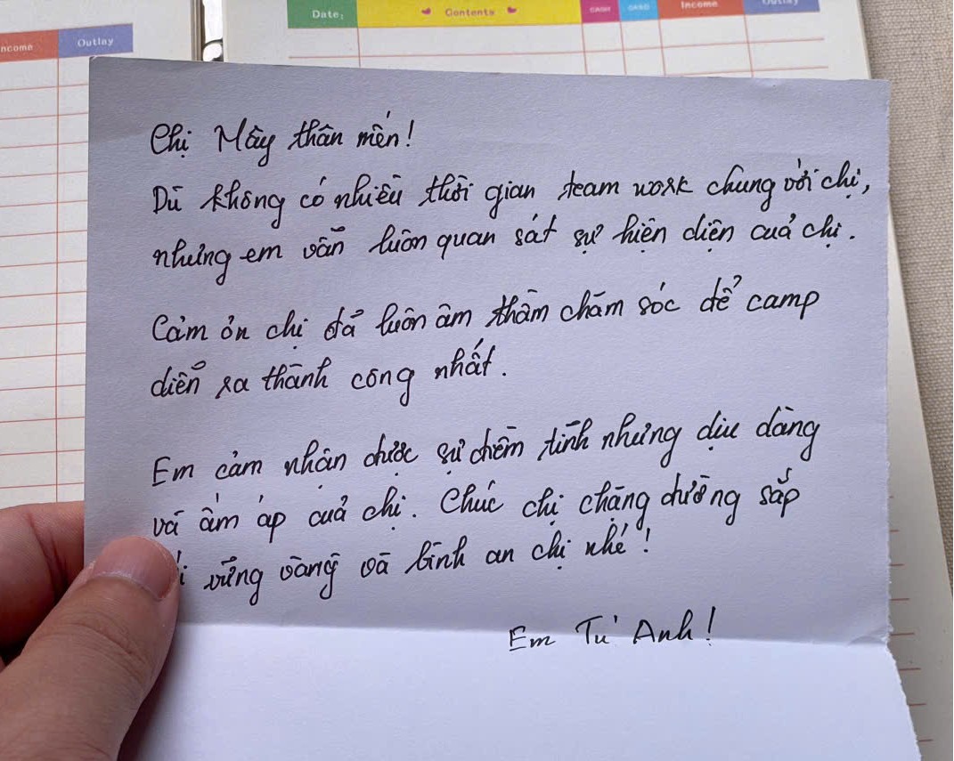 … Và còn rất nhiều những lá thư như thế — được viết sau mỗi sự kiện kết thúc. Mỗi dòng chữ gửi đến mình đều khiến mình lặng đi một chút – vừa xúc động, vừa biết ơn, vì đã được góp phần nhỏ bé để một sự kiện trở nên trọn vẹn, để ai đó có thêm một kỷ niệm đẹp để nhớ mãi.